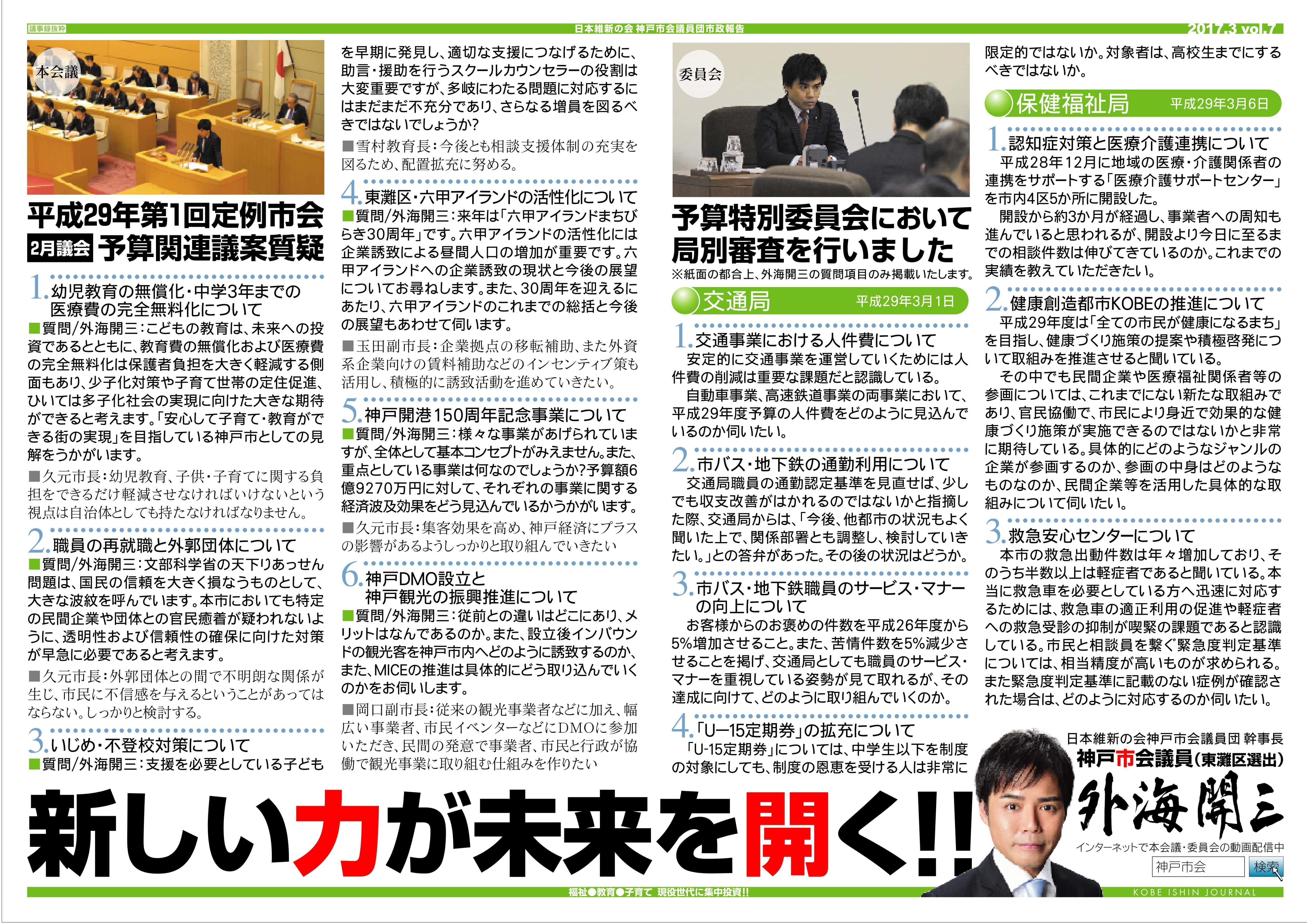 神戸市バス31系統終発延長されました 平成27年10月1日の決算特別委員会にて交通局に対し質疑・要望した「31系統終発延長」が平成28年4月1日ダイヤ改正にて決定いたしました。 「需要に応じたダイヤの見直しについて」下記の質疑を行いました。 「ダイヤの終発延… sotomi2016-04-012023-05-10 市政報告, 議会活動 神戸市バス31系統終発延長されましたRead more